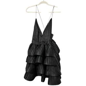 Maeve Sleeveless Tiered Mini Dress Plunging Neckline Open Back Black Size 12