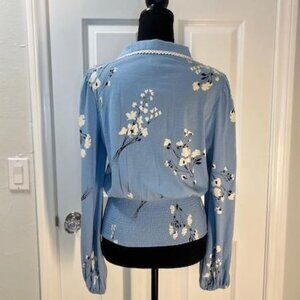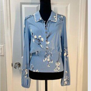 Maeve Smocked Button-down Top in Blue Pattern from Anthropologie –Size Small–NWT