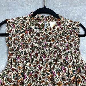Maeve Smocked High Neck Ruffle Floral Print Blouse Size 10
