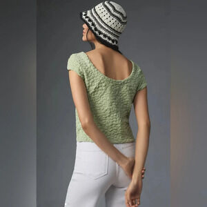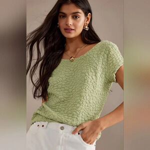 An elevated basic tee that can be dressed or down. The popcorn texture with its unique pattern adds to the versatility of the top. Cute addition to your summer wardrobe.