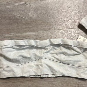 Chic strapless crop top by Maeve. Soft gray hue. Ideal for layering or solo wear. Comes with straps in a cute little bag.