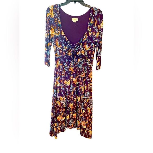 Maeve Sz M Purple Cottagecore Front Tie Boho Gypsy Vibe Rayon Stretch Midi Dress