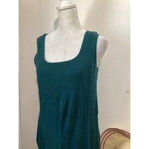 Maeve Teal Blue Ribbed Sleeveless Midi Dress Square Neck Petite M