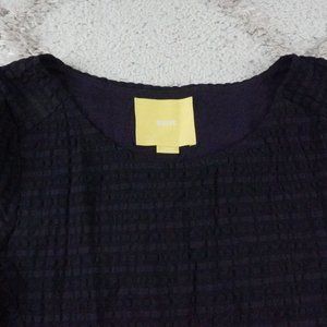 Maeve Textured Gauze Dress Womens Large Navy Blue Short Sleeve