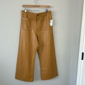 Maeve The Colette Cropped Wide Leg Faux Leather Pants Cedar Brown Sz 32 NEW