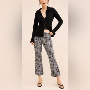 Maeve Anthropologie The Margot Kick Flare Cropped Knit Pull On Pants Fleur