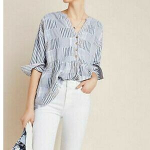 NWT Anthropologie Maeve Zoe Swing Blouse in Patchwork Blue