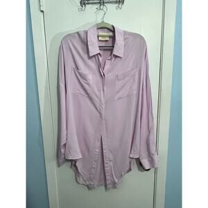 Maeve Tie Front Shirt Large Pale Pink Roll Tab Sleeves Preppy Summer Minimalist, in great condition.
