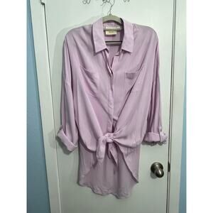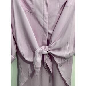 Maeve Tie Front Shirt Large Pale Pink Roll Tab Sleeves Preppy Summer Minimalist