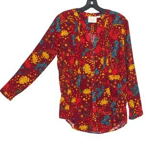 Maeve Top Boho Cottage Retro Whimsical Grandma Folk Floral Button Up Red Small