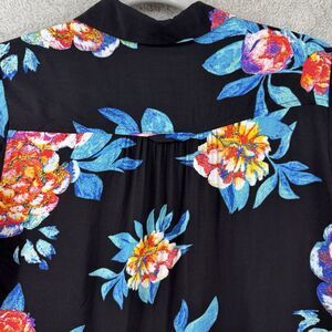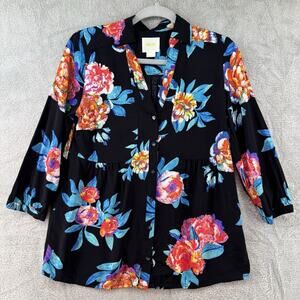 Maeve Top Women 4 Black Red Floral V-Neck Collared 3/4 Sleeves Button Up Casual