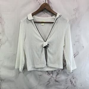 Maeve Top Womens Small White Black Gauze Flower Rosette Topper Cardigan