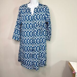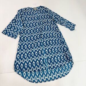 Maeve Tunic Dress Womens Small Blue Ikat Shirt Dress High Low 3/4 Sleeeve