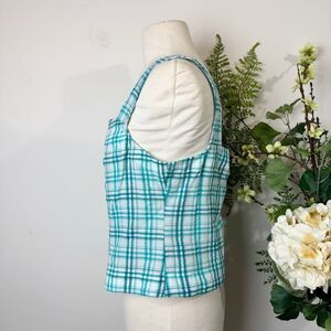 Maeve Turquoise Plaid Button-Front Tank | Medium | NWT