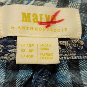Maeve Two Toned Blue Distressed Gingham High Waisted Belted Casual Trousers A32