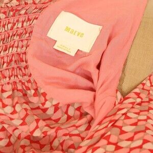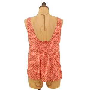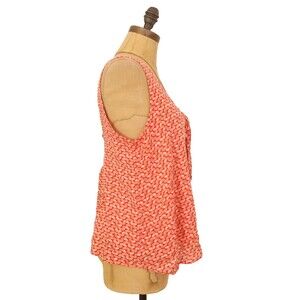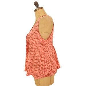 Maeve Verena Anthropologie Tank Top S Tie Front Smocked Geo Print Orange EUC B29