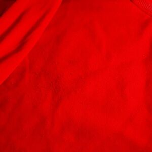 Bold red sweater with a classic crew neck. Features stylish tie details on sleeves. Perfect for adding a pop of color.
