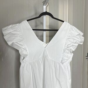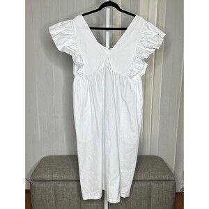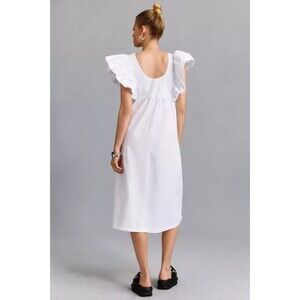Maeve White Midi Dress Flutter Sleeves V Neckline Empire Waist Romantic Size L