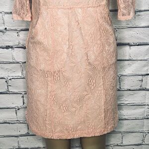 Maeve Womens Blush Pink 3/4 Sleeve Keyhole Scoop Neck Lace A-Line Dress Small