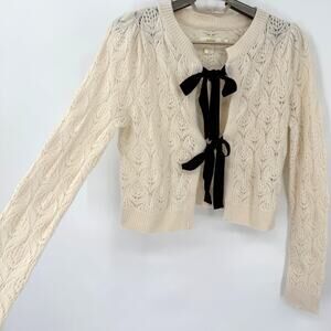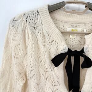 Maeve Womens Bow-Tie Pointelle Cashmere Cardigan Sweater Lace Cream Size XS