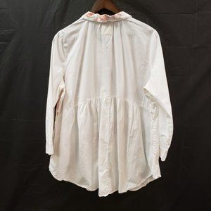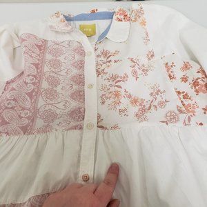 Maeve Womens Floral Patchwork Button Up Shirt Size XL Ivory Long Sleeve Collar