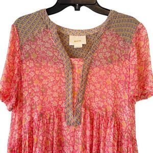 Maeve Womens Mini Dress Size 2 Pink Floral Bohemian Beachy Spring Summer Anthro