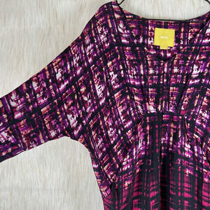 Maeve Womens Mini Kaftan Dress Purple Abstract Jewel Neck Half Sleeve S