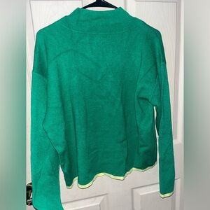 Super soft burgundy mock neck sweater has pretty pink piping and perfect amount of warmth.