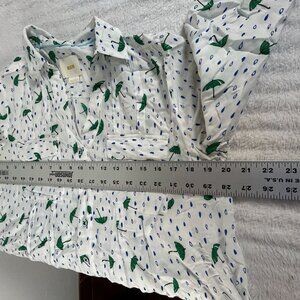 Maeve Womens White Green Umbrella Print Button-Up Long Sleeve Blouse Top Size 8