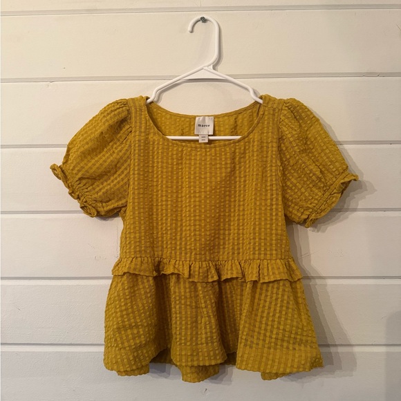 Maeve mustard blouse Features playful ruffles and puff sleeves Women’s XXS New without tags Non-smoking home