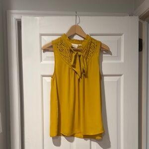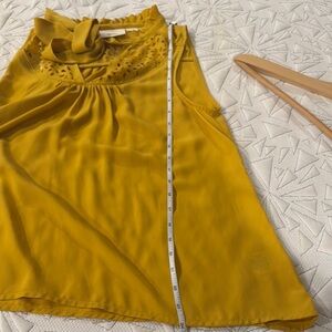 Brighten your wardrobe with this stylish yellow sleeveless top. Perfect for any occasion, it features a chic design that pairs well with any outfit. Maeve. Size 8. Measurements as shown in photos.