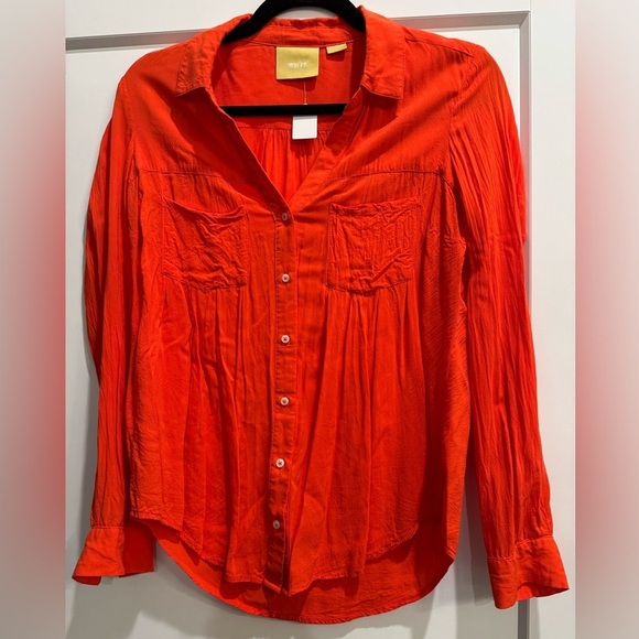 The perfect pop of color in this easy to wear Maeve top. Double pockets with buttons down front