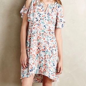 Maeve at Anthropologie Watercolor Dot Cold Shoulder Dress
