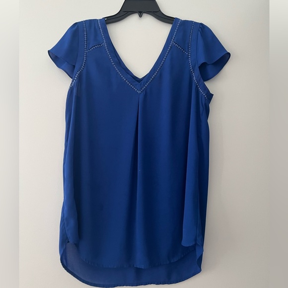 Chic V-neck blouse with short sleeves. Features delicate stitching. Perfect for versatile styling.