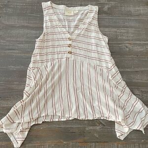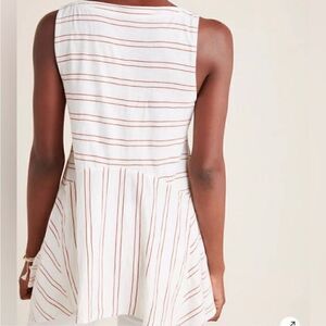 Maeve by ANTHROPOLOGIE White with brown stripes Alayne handkerchief Tunic Tank