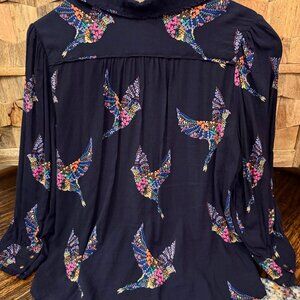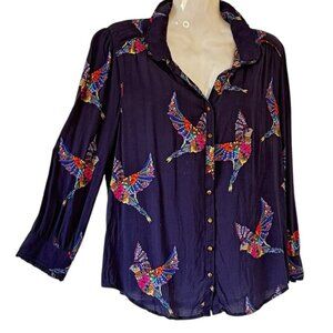 Maeve by Anthropologie Aldin Floral Bird Print Button Down Top - Size M