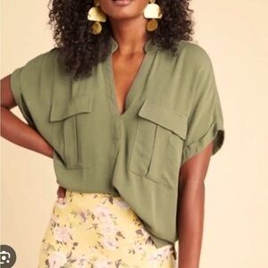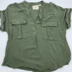 Maeve by Anthropologie Amira Utility Blouse Womens Avocado V Neck Small