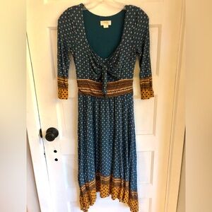 Maeve by Anthropologie Beloved Multicolored Midi Dress 3/4 Sleeve