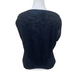 Maeve by Anthropologie Black Cap Sleeve, Linen Blend, Large Knit Sweater Top