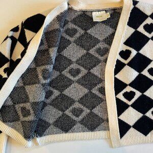 Maeve by Anthropologie Black & Cream Check w/ Hearts Cardigan