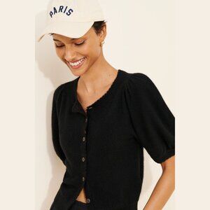 Maeve by Anthropologie Black Puff-Sleeve Cashmere Cardigan Sweater 2673