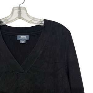 Maeve by Anthropologie Black Thea Ribbed V-Neck Pullover Sweater Large