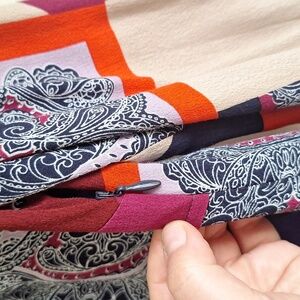 Add some bold color and bohemian charm to your wardrobe with this vibrant patchwork-style dress! Featuring rich tones of burgundy, purple, navy, and tan with ornate black and white paisley accents. The lightweight material and relaxed silhouette make it perfect for casual outings or layered up for fall.