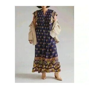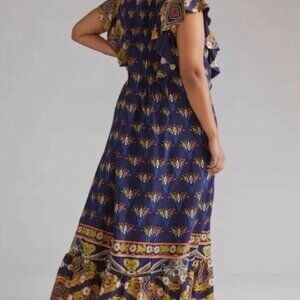 Maeve by Anthropologie Cassandra Flutter Sleeve Floral Navy Blue Maxi Dress XS /s1