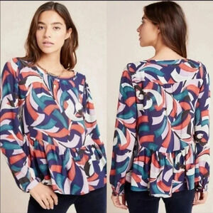 Maeve by Anthropologie Cheyenne Feminine Peplum Hem Puff Sleeve Blouse(S)