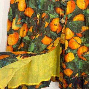 Color/Print: Green base with orange citrus fruit pattern