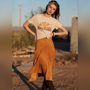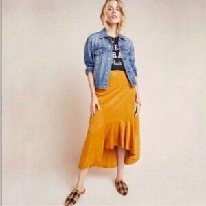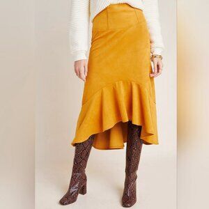 Maeve by Anthropologie Cosima Flounced High Low Skirt Brushed Faux Suede Sz 0