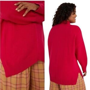 Anthropologie Maeve Crystal High Neck Tunic Knot Sweater Pink Chunky High Low