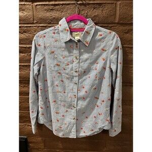 Maeve by Anthropologie Embroidered Button-Down Shirt Navy Blue, Size 0