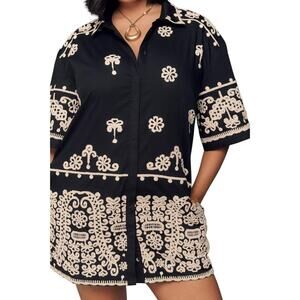 Maeve by Anthropologie Embroidered Collared Shirt Mini Dress Black/Cream – XXS